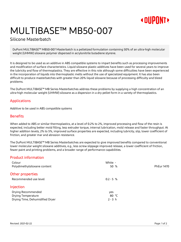 - 杜邦(原道康寧)硅酮母粒